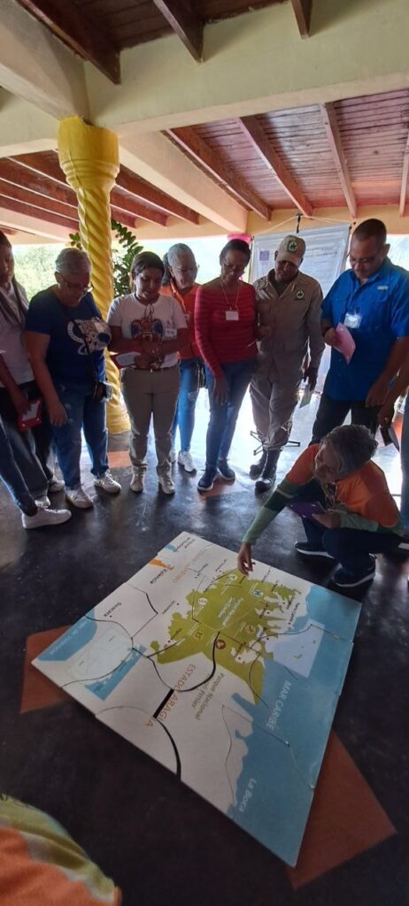 January 16, 2026 Fundación Tierra Viva, a través de su proyecto Costa Viva, se reunió con 20 docentes de la Unidad Educativa Creación Patanemo, de la Unidad Educativa Los Caneyes y con varios miembros del Instituto Nacional de Parques (Inparques) el 14 de enero de 2026, en el marco del aniversario del Parque Nacional San Esteban, sobre las estrategias educativas para el desarrollo sustentable en ecosistemas marino costeros. La actividad se hizo en alianza con Inparques, una institución clave para el liderazgo comunitario de Patanemo, estado Carabobo. Fue el primer encuentro del circuito educativo de Patanemo con Costa Viva, una alianza con la Fundación para la Defensa de la Naturaleza (FUDENA), la Asociación Civil Trabajo y Persona y la Unión Europea, para promover el desarrollo sustentable y la conservación de los ecosistemas marino costeros en las poblaciones del litoral venezolano. Una de las estrategias de enseñanza a los docentes fue los rompecabezas con el mapa del Parque Nacional San Esteban y sus hitos geográficos, biológicos y arqueológicos. Fotografía: Taublí Peña El encuentro estuvo marcado por una metodología interactiva donde, a través de juegos de coordinación y el uso de tarjetas informativas, los docentes profundizaron en la historia local —desde los asentamientos arawacos hasta los fortines españoles que decoran el parque nacional— y la biodiversidad local —entre albuferas, manglares y bosques nublados—. «Se resaltó que el parque no es solo paisaje, sino un corredor biológico vital de 44,500 hectáreas que brinda agua y seguridad alimentaria a la región», reforzó Taublí Amaloha Peña, docente de Fundación Tierra Viva. «Los docentes, tras armar el rompecabezas de la poligonal y analizar los servicios ambientales, concluyeron que unificar criterios técnicos les permite replicar información con mayor impacto». Fotografía: Taublí Peña Los profesores de Patanemo también celebraron el preámbulo del día del maestro en Venezuela, que se celebra cada 15 de enero, con mayores herramientas pedagógicas para apoyar a sus alumnos en el retorno de sus vacaciones. Fundación Tierra Viva espera mantener las alianzas con los docentes de Patanemo y con Inparques para avanzar en la educación para el desarrollo sostenible en el Parque Nacional San Esteban. *** Fotografía de portada: archivo de Fundación Tierra Viva Sobre Costa Viva Proyecto ejecutado por Fundación Tierra Viva junto a la Fundación para la Defensa de la Naturaleza (FUDENA), la Asociación Civil Trabajo y Persona y cofinancianciado por la Unión Europea para promover acciones comunitarias que contribuyan a la conservación de los ecosistemas marino costeros y al mejoramiento de la calidad de vida de las poblaciones locales en los estados del litoral venezolano. Sobre Fundación Tierra Viva Organización venezolana, no gubernamental y sin fines de lucro fundada en 1996 dedicada a la educación, promoción y ejecución de proyectos sobre el desarrollo sustentable a través de estrategias de participación y acción social. Instagram: @tierravivavzla Correo: comunicaciones.tierraviva@gmail.com WhatsApp: Fundación Tierra Viva