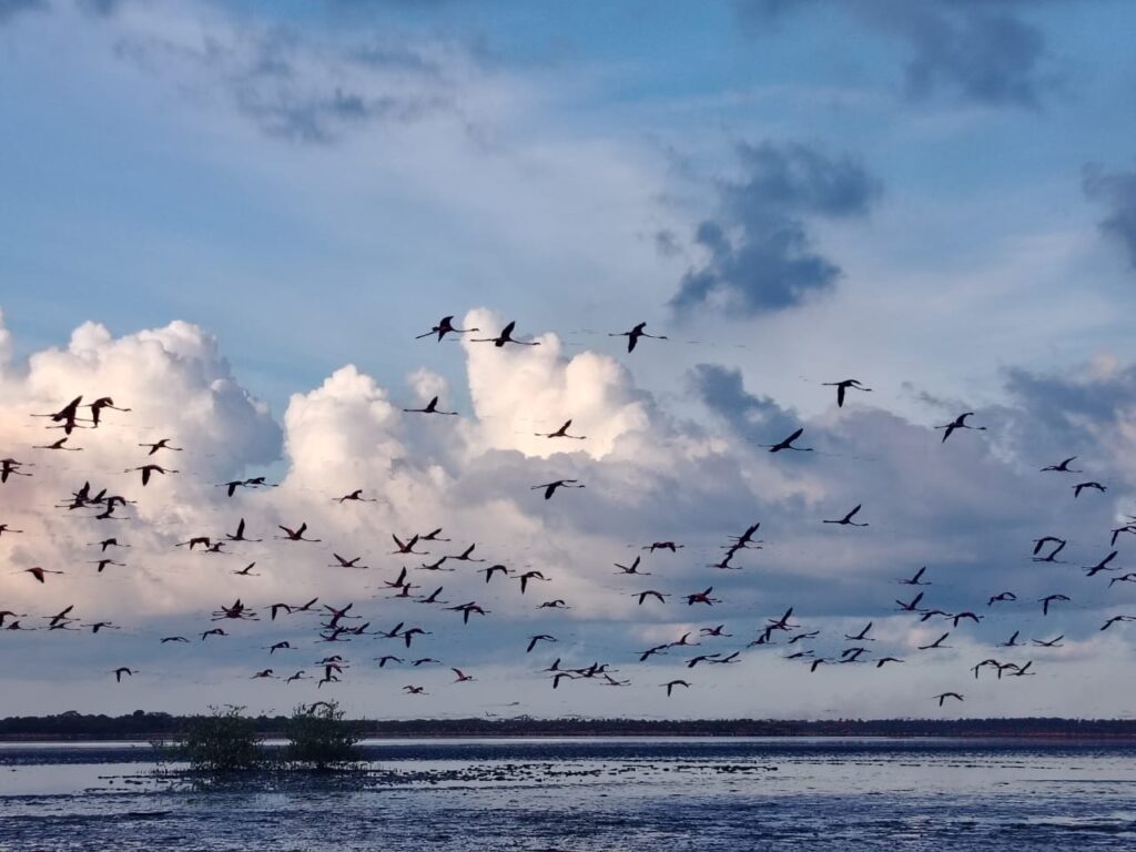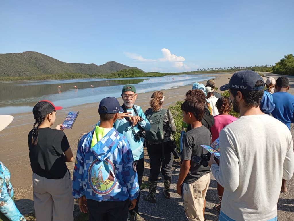 October 14, 2025 El pasado 11 de octubre de 2025, Fundación Tierra Viva y la Fundación para la Defensa de la Naturaleza (FUDENA) organizaron dos jornadas de ciencia ciudadana y avistamiento de aves en la Laguna de La Bocaina, en el Parque Nacional San Esteban, y en el Refugio de Fauna Silvestre Cuare. Más de 50 personas, entre guardaparques, estudiantes universitarios y niños, niñas y adolescentes, participaron entre las tres jornadas que organizó Costa Viva en el marco del Día Mundial de las Aves Migratorias, que se celebra dos veces al año: en el segundo sábado de mayo y en el segundo sábado de octubre. Parte de los participantes del October Big Day 2025 en la Laguna La Bocaina. Fotografía: Alejandro LuyParte de los participantes del October Big Day 2025 en el Refugio de Fauna Silvestre Cuare. Fotografía: Maríángela Nieves Este año, la temática del Día Mundial de las Aves Playeras se centró en la relación entre los hábitats urbanos y los ecosistemas de refugio de las aves migratorias. El Proyecto Costa Viva —una iniciativa de Fundación Tierra Viva junto a la Unión Europea, FUDENA y la Asociación Civil Trabajo y persona— escogió los dos humedales costeros cercanos a las ciudades de Chichiriviche, estado Falcón (Cuare), y de Gañango, estado Carabobo (La Bocaina). Fotografía: Maríangela NievesFotografía: Jordana AyalaFotografía: Jordana Ayala Pajarear en la Laguna La Bocaina Según la Unión Venezolana de Ornitólogos (UVO), en el país existen 132 especies de aves migratorias que pasan por el país. Al menos 18 de ellas se encuentran en la Laguna La Bocaina, según la plataforma eBird. El equipo de Fundación Tierra Viva llegó el 10 de octubre a Gañango para tener una charla educativa sobre las aves migratorias. Allí, más de 15 habitantes de la comunidad aprendieron los elementos básicos de la identificación y observación de aves en el kiosco comunitario «La Bocaina». Inparques, la Universidad de Carabobo, los observadores de aves del estado Carabobo y el kiosco «La Bocaina» fueron aliados de Costa Viva para organizar el evento en el Parque NAcional San Esteban. Foto: Archivo Fundación Tierra Viva «Nuestra intención fue desarrollar estas jornadas en los dos estados donde el Proyecto Costa Viva tiene mayor acción comunitaria. Intentamos que la prioridad ese día fuera integrar a las poblaciones locales (…), sobre todo a las juventudes», dijo Jordana Ayala, gerente de proyectos socio ambientales de Fundación Tierra Viva. La jornada en la Laguna La Bocaina tuvo 35 participantes. Entre ellos había 7 niños, niñas y adolescentes de Gañango, 10 estudiantes de biología de la Universidad de Carabobo, 3 observadores de aves y 10 guardaparques del Parque Nacional San Esteban, quienes apoyaron en la organización del recorrido. Entre flamencos, águilas pescadoras (Pandion haliaetus) y playero patilargo (Calidris himantopus), el equipo de la Laguna de la Bocaina identificó 30 especies de aves en el humedal costero del Parque Nacional San Esteban, incluyendo 8 aves migratorias. Génesis Yanes, coautora del libro «Aves de La Bocaina, Venezuela», apoyó al equipo de Costa Viva en el acompañamiento de los observadores de aves para identificar las especies. Águilas pescadora (Pandion haliaetus) en el la Laguna La Bocaina. Fotografía: Alejandro LuyPlayero patilargo (Calidris himantopus) en la Laguna La Bocaina. Fotografía: Alejandro LuyFlamencos del Caribe (Phoenicopterus ruber) en la Laguna La Bocaina. Fotografía: Alejandro Luy Una brigada de observadores de aves para Cuare El Refugio de Fauna Silvestre Cuare es considerado por la Convención sobre los Humedales de Ramsar como un santuario para las aves migratorias en Venezuela. Cristina Sainz, miembro directivo de la UVO, mencionó que en las albuferas de Chichiriviche se han identificado 350 especies, donde al menos 34 son migratorias. Esa gran cantidad de fauna permitió al refugio ser declarado como un humedal de interés mundial (un sitio de Ramsar). Por ello, FUDENA organizó en conjunto con los guardaparques del refugio dos jornadas de avistamiento de aves ese 11 de octubre: uno en la mañana y otro en la tarde. En total participaron 40 personas, entre ellas hubo 19 niños, niñas y adolescentes de Chichiriviche, 3 guardaparques del Refugio y 2 observadores de aves del estado Falcón. Fotografía: Mariángela NievesFotografía: Mariángela NievesFotografía: Mariángela Nieves En las dos jornadas los voluntarios identificaron al menos 19 especies de aves, entre ellas habían especies migratorias como los playeritos menudos (Calidris minutilla), los playeros rabadilla blanca (Calidris fuscicollis) y los tigüi-tigüe chico (Tringa Flavipes). «Esta actividad dio pie a la iniciativa de conformar una brigada de observadores de Aves y defensores de fauna silvestre de Cuare – Morrocoy. Al menos 15 participantes se anotaron para comenzar a formar ese grupo», dijo Erwin García Guillén, miembro de FUDENA y asistente logístico del Proyecto Costa Viva. Los flamencos también habitan en el Refugio de Fauna Silvestre de Cuare. Son considerados aves migratorias, aunque vuelan distancias cortas. Fotografía: Archivo de FUDENA. Las jornadas en Cuare también contaron con la participación de al menos 10 instituciones locales como el Ministerio de Ecosocialismo, Ahete (Red de Turismo Sostenible) Falcón, la comunidad estudiantil del municipio Monseñor Iturriza —representada por el Liceo Nacional Ramon Yanez, la Unidad Educativa Negra Matea Bolívar y la Unidad Educativa Isabel Platt de Veroez—, el movimiento ecológico, artesanal y cultural «Por Amor al Arte y la Naturaleza», el Instituto Autónomo de Turismo, Artesanía y Recreación del municipio Monseñor Iturriza (ITARMI), el Instituto Municipal de Ambiente Iturriza (IMAITU), la Dirección de economía productiva UPF «Turismo Mar y Sol» y PoliFalcón. «Otro de los objetivos del Proyecto Costa Viva es reforzar las capacidades de 