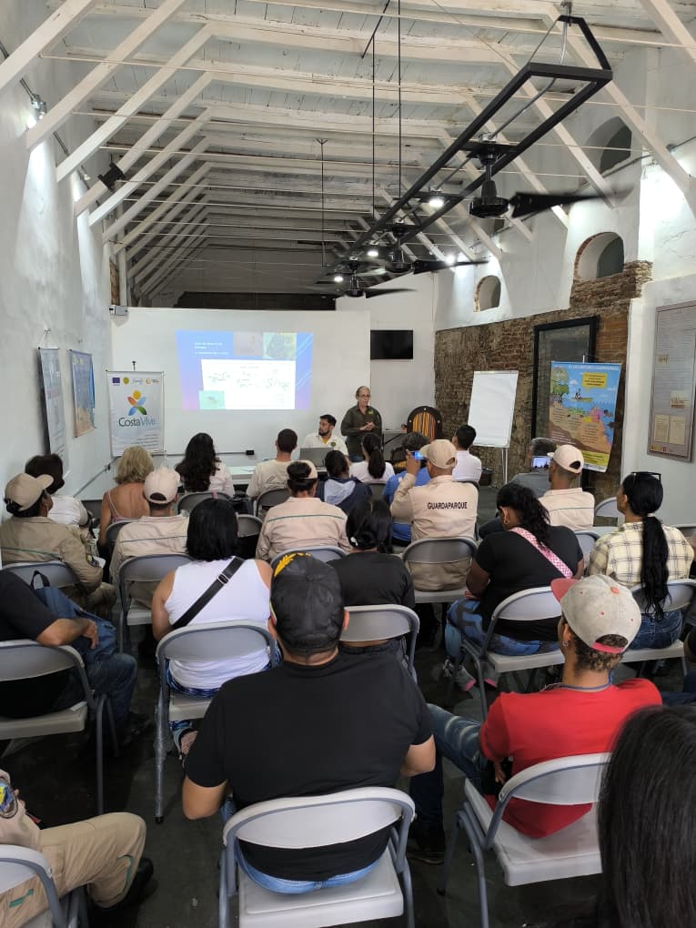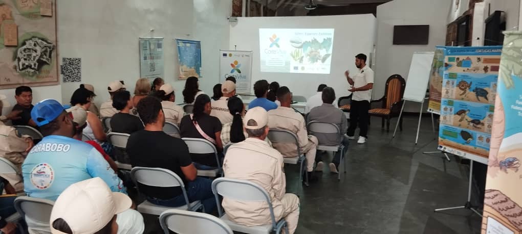 November 6, 2025 Este 5 de noviembre, el equipo de Costa Viva —una iniciativa de Fundación Tierra Viva, junto a la Unión Europea, Fundación para la Defensa de la Naturaleza (FUDENA) y la Asociación Civil Trabajo y Persona— impartió su primer taller sobre especies exóticas e invasoras a alrededor de 40 funcionarios públicos venezolanos y pescadores en el Espacio Cultural Avril, en Puerto Cabello, estado Carabobo. En Venezuela existen más de 10 especies introducidas que ponen en riesgo la flora y la fauna de los ecosistemas marino costeros venezolanos. El pez león (Pterois volitans), el coral blando Unomia stolonifera y el pasto de sal (Halophila stipulacea) son algunas especies introducidas y destacadas por la comunidad científica venezolana que afecta directamente las costas del estado Carabobo. Foto: Jordana Ayala Vecinos de Puerto Cabello se unieron a los miembros de Inparques Carabobo para aprender del impacto ecológico y socioeconómico de las especies marinas invasoras de la mano de Fundación Tierra Viva, el Laboratorio de Biología Marina Costera de la Universidad de Carabobo (BIOMAC-UC) y el Instituto Socialista de Pesca y Acuicultura (Inopesca). Los objetivos de este primer encuentro fue promover la ciencia ciudadana local y fortalecer las capacidades de acción de las instituciones públicas en Puerto Cabello. El encuentro formativo también sirvió para reforzar las actividades para mitigar el impacto de estas especies invasoras, como las válidas de pesca del pez león, impartido por el Instituto Nacional de Espacios Acuáticos (IENA), para promover jornadas de caza de esa especie —como lo ha hecho la Federación Venezolana de Actividades Subacuáticas en los estados La Guaira y Anzoátegui— y aprovecharlo en la gastronomía y la economía local. Foto: Joradana Ayala «Durante el taller surgió un debate centrado en la necesidad urgente de controlar la población del pez león en las zonas aledañas del Parque Nacional San Esteban», explicó Jordana Ayala, gerente de proyectos socio ambientales de Fundación Tierra Viva. «Esta especie exótica, al carecer de depredadores naturales, prolifera descontroladamente y representa una amenaza voraz para las poblaciones nativas». Los funcionarios del INEA recordó en el taller que la técnica más efectiva para controlar a esa especie es la caza con arpón; sin embargo, cualquier tipo de pesca en zonas protegidas como los parques nacionales está bajo regulaciones nacionales. «Como resultado de este taller, los pescadores de la comunidad acordó junto con las autoridades locales crear una mesa de trabajo interseccional para controlar esta especie», resaltó Ayala. Se espera que las primeras reuniones de la mesa de trabajo interseccional ocurran en las primeras semanas de diciembre, mientras tanto, el equipo de Costa Viva mantiene sus actividades de formación y acción para promover el desarrollo sustentable en las poblaciones del litoral venezolano. Fotografìas: archivo Fundaciòn Tierra Viva ********* Fotografía de portada: archivo Fundación Tierra Viva Sobre Costa Viva Proyecto ejecutado por Fundación Tierra Viva junto a la Fundación para la Defensa de la Naturaleza (FUDENA), la Asociación Civil Trabajo y Persona y el cofinanciamiento de la Unión Europea para promover acciones comunitarias que contribuyan a la conservación de los ecosistemas marino costeros y mejorar de la calidad de vida de las poblaciones locales del litoral venezolano. Sobre Fundación Tierra Viva Organización venezolana, no gubernamental y sin fines de lucro fundada en 1996 dedicada a la educación, promoción y ejecución de proyectos sobre el desarrollo sustentable a través de estrategias de participación y acción social. Instagram: @tierravivavzla WhatsApp: Fundación Tierra Viva